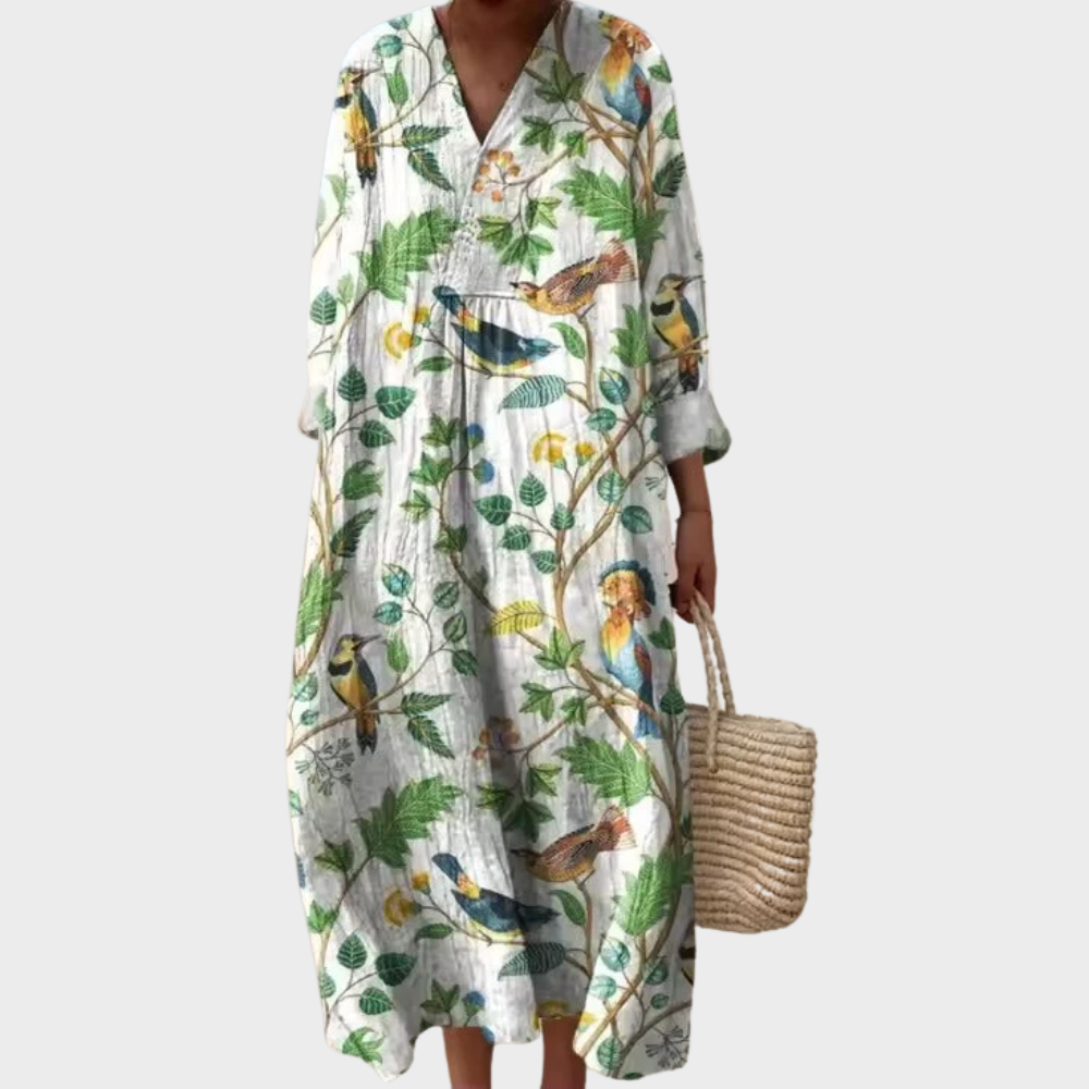 Ta sukienka to hołd dla nowoczesnej kobiety, która ceni sobie swobodę, komfort i subtelną elegancję. Kwiatowy nadruk 3D przyciąga wzrok, a zwiewny materiał sprawia, że sukienka układa się z gracją przy każdym ruchu.